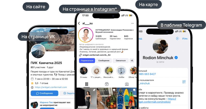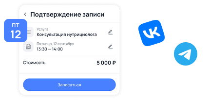Разместите ссылку на онлайн-запись — клиент сам выберет время и оплатит. Вы не потеряете запись, даже если заняты.