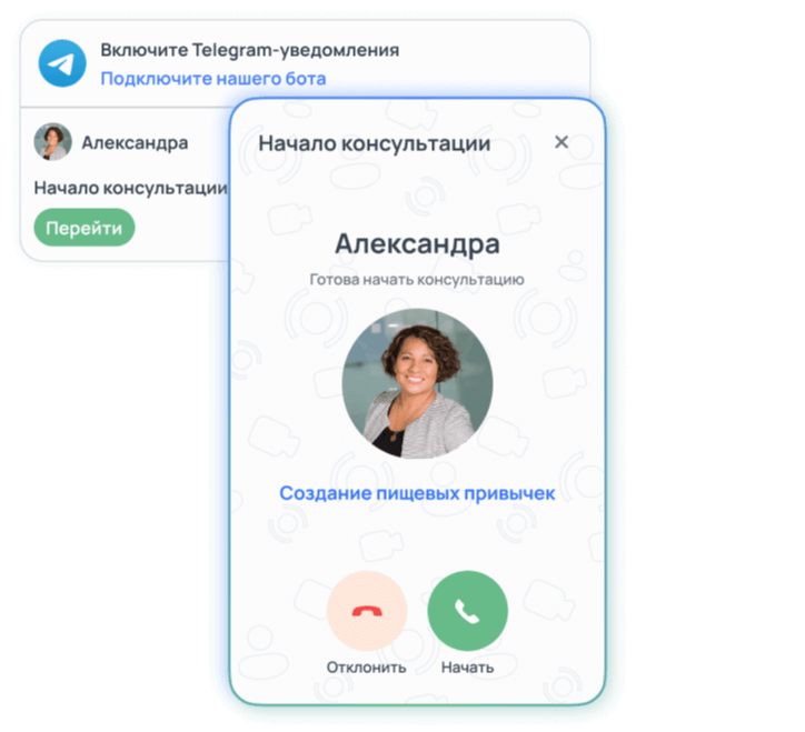 - Вышлем прямую ссылку на звонок на почту и в Telegram